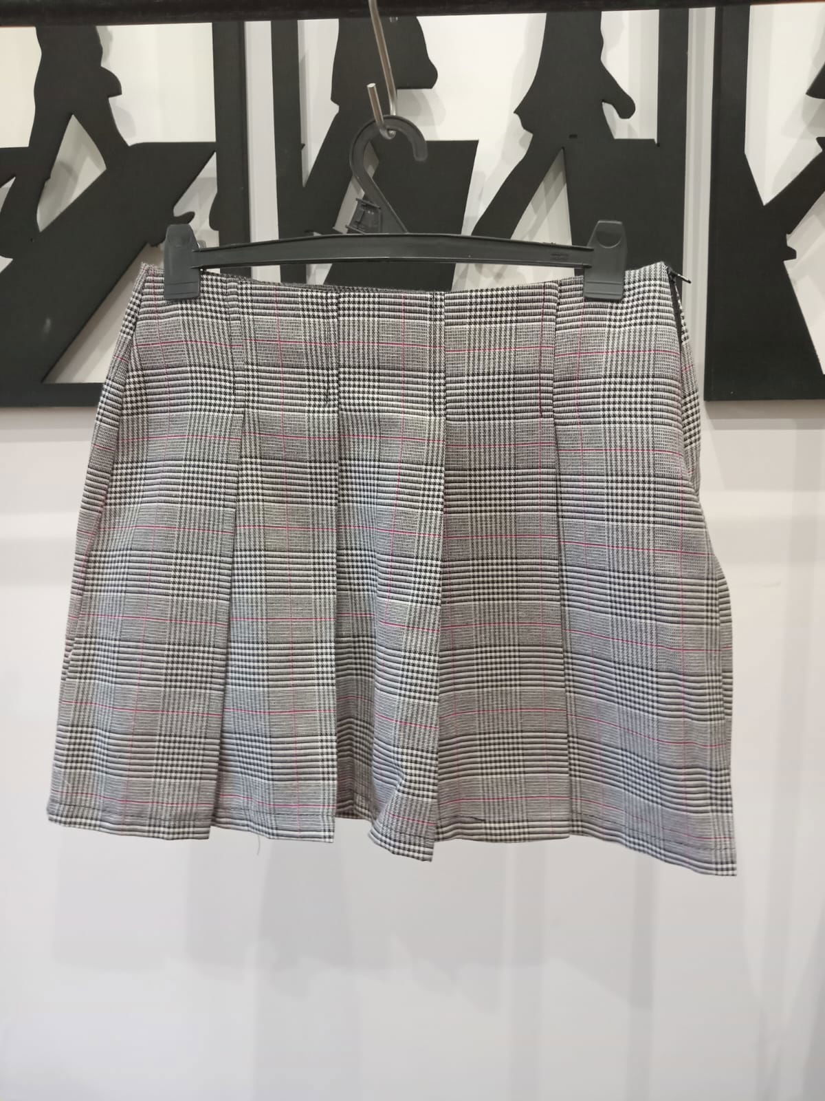 Falda short príncipe de Gáles, tableada, tiro alto.