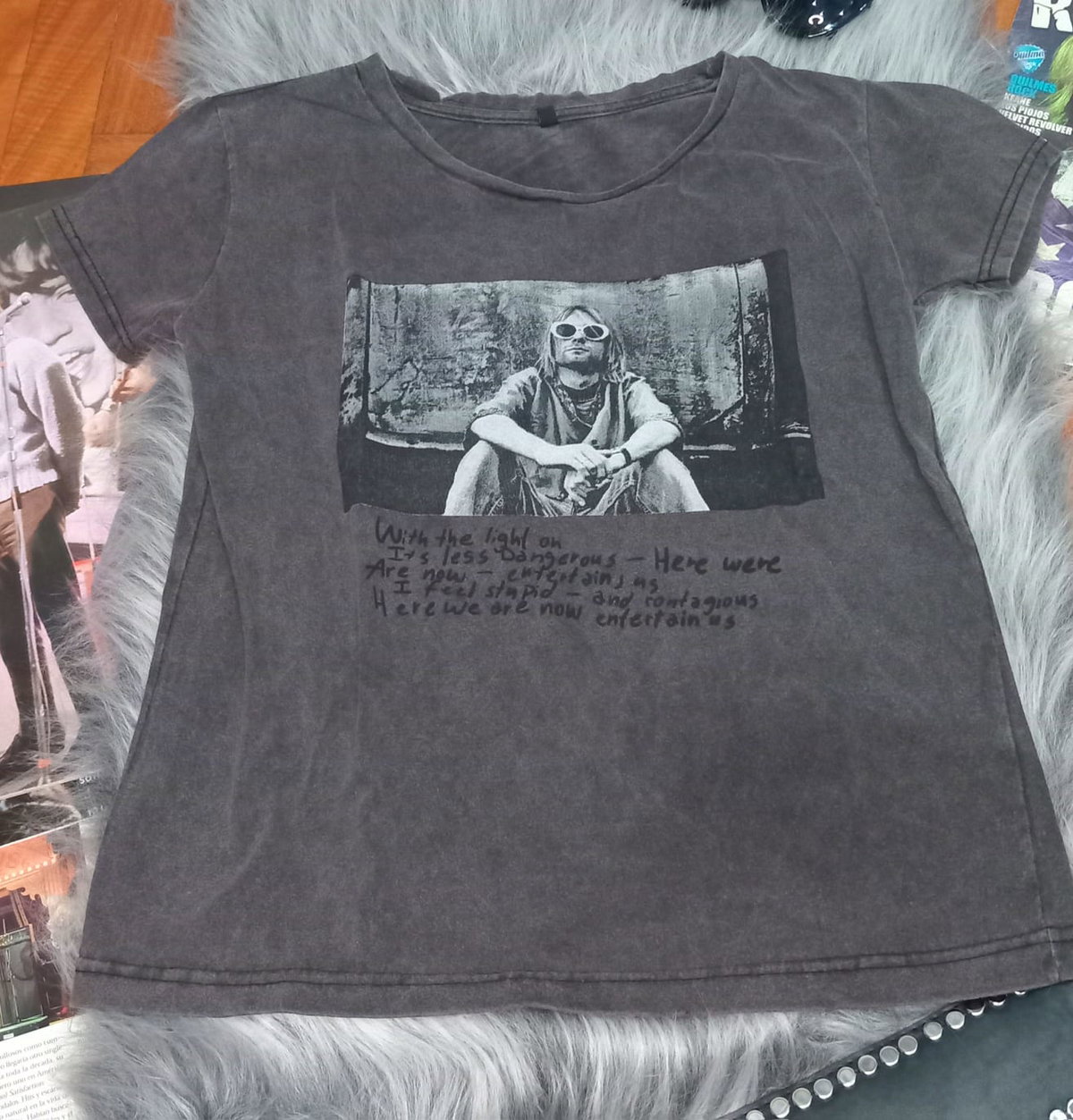 Remera Gastada estampada, Talle S. Medidas: 54 cm de largo, 48 cm de ancho, sisa 21 cm.