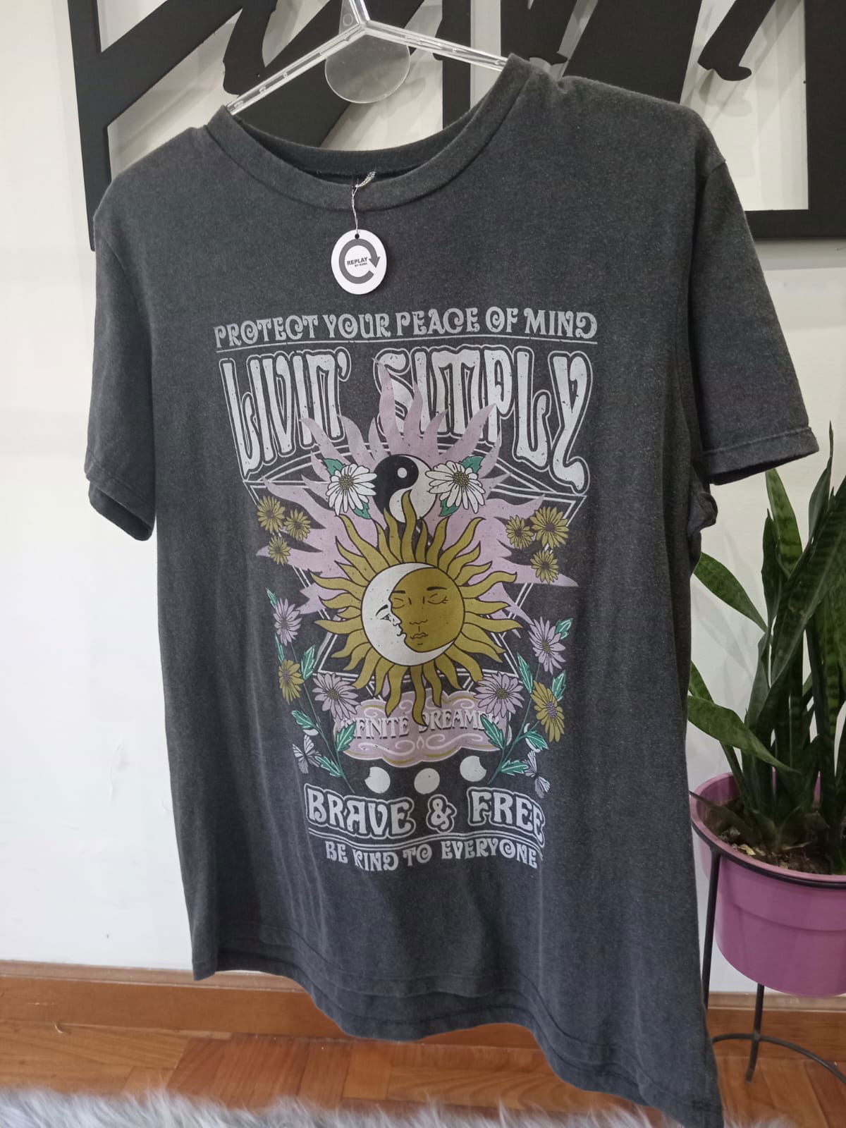 Remerón de algodón, cuello redondo, Talle único. Medidas: 70 cm de largo, 53 cm de ancho, 21 cm de sisa.