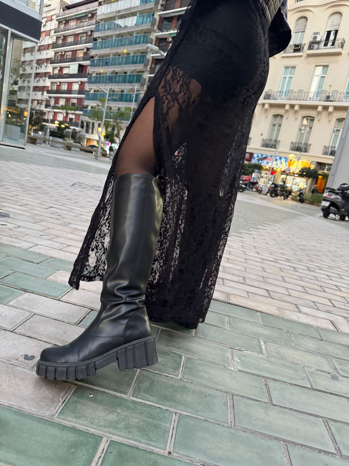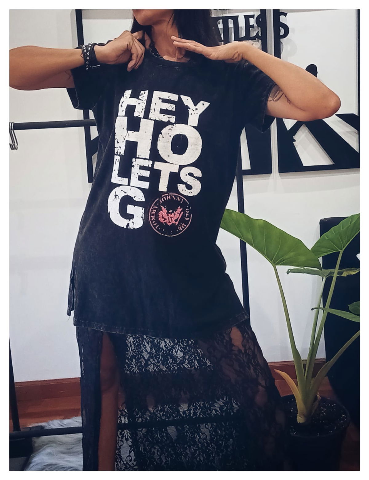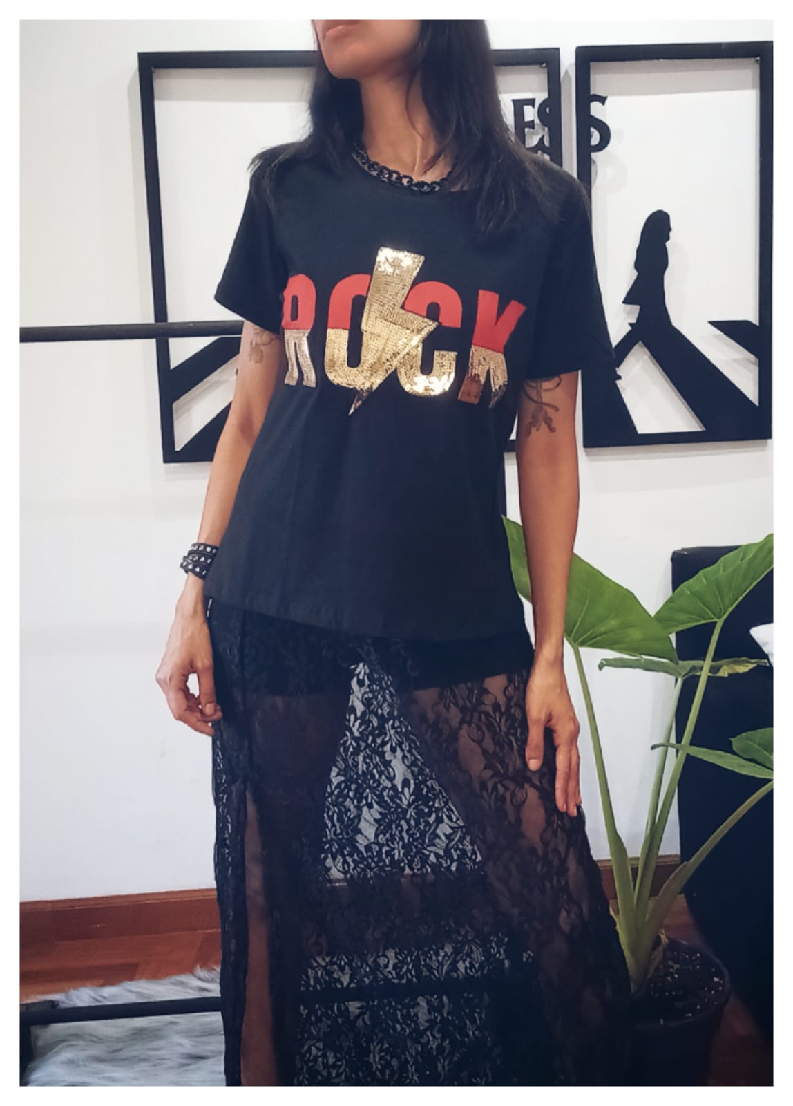 Falda de encaje, tiro alto, y tajo al costado. Talle única.