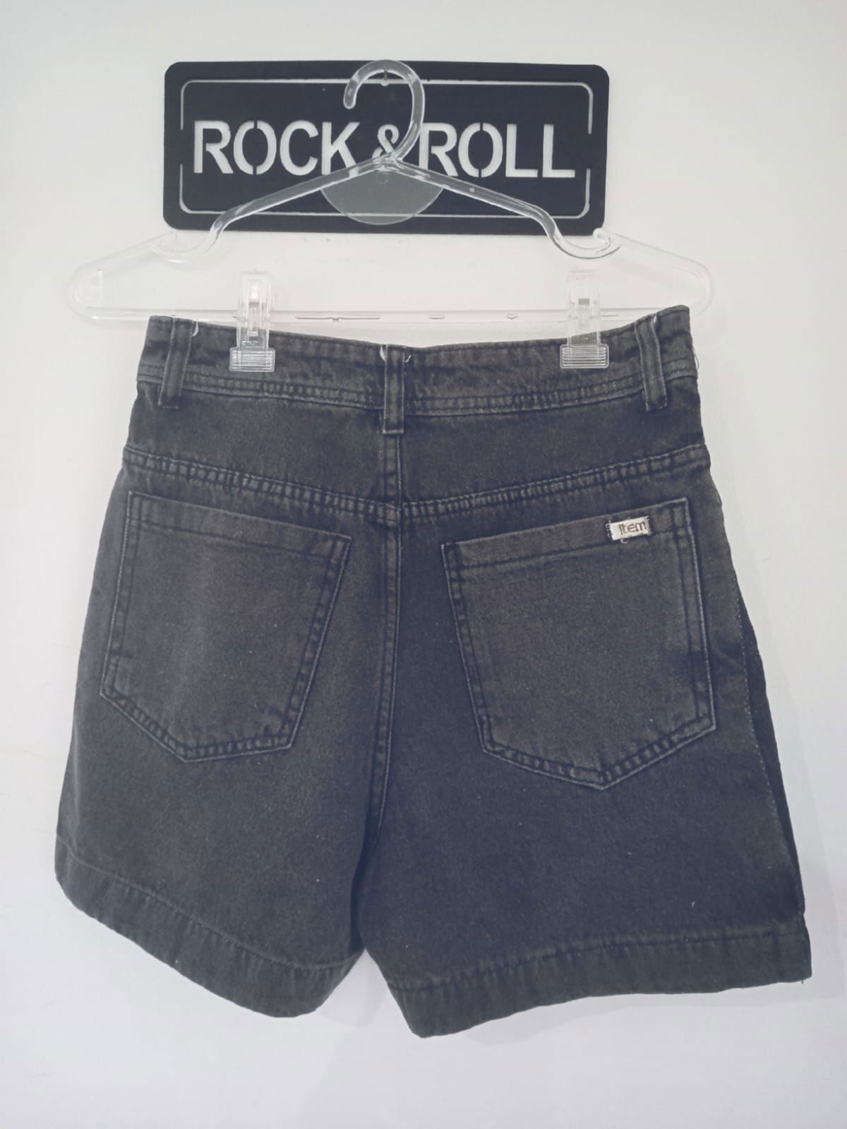 Short de Jean tiro alto, lavado, Detalle desgaste oscuro a los costados.