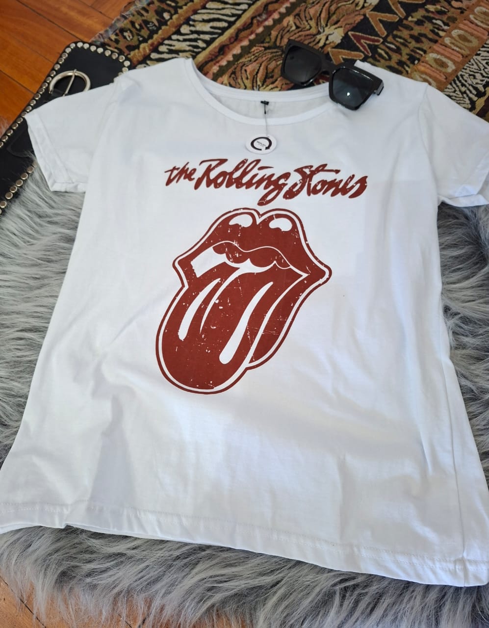 Remera clásica de algodón, cuello redondo. talle M. Medidas: 64 cm de largo, 49 cm de ancho, 20 cm de sisa.