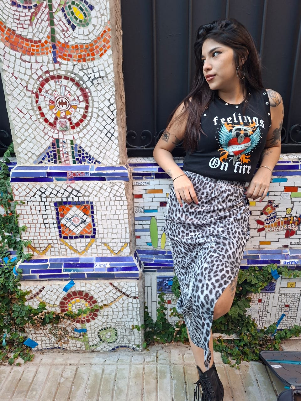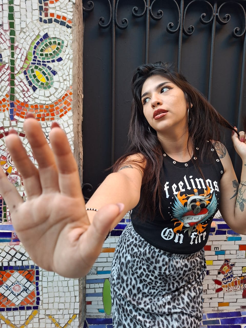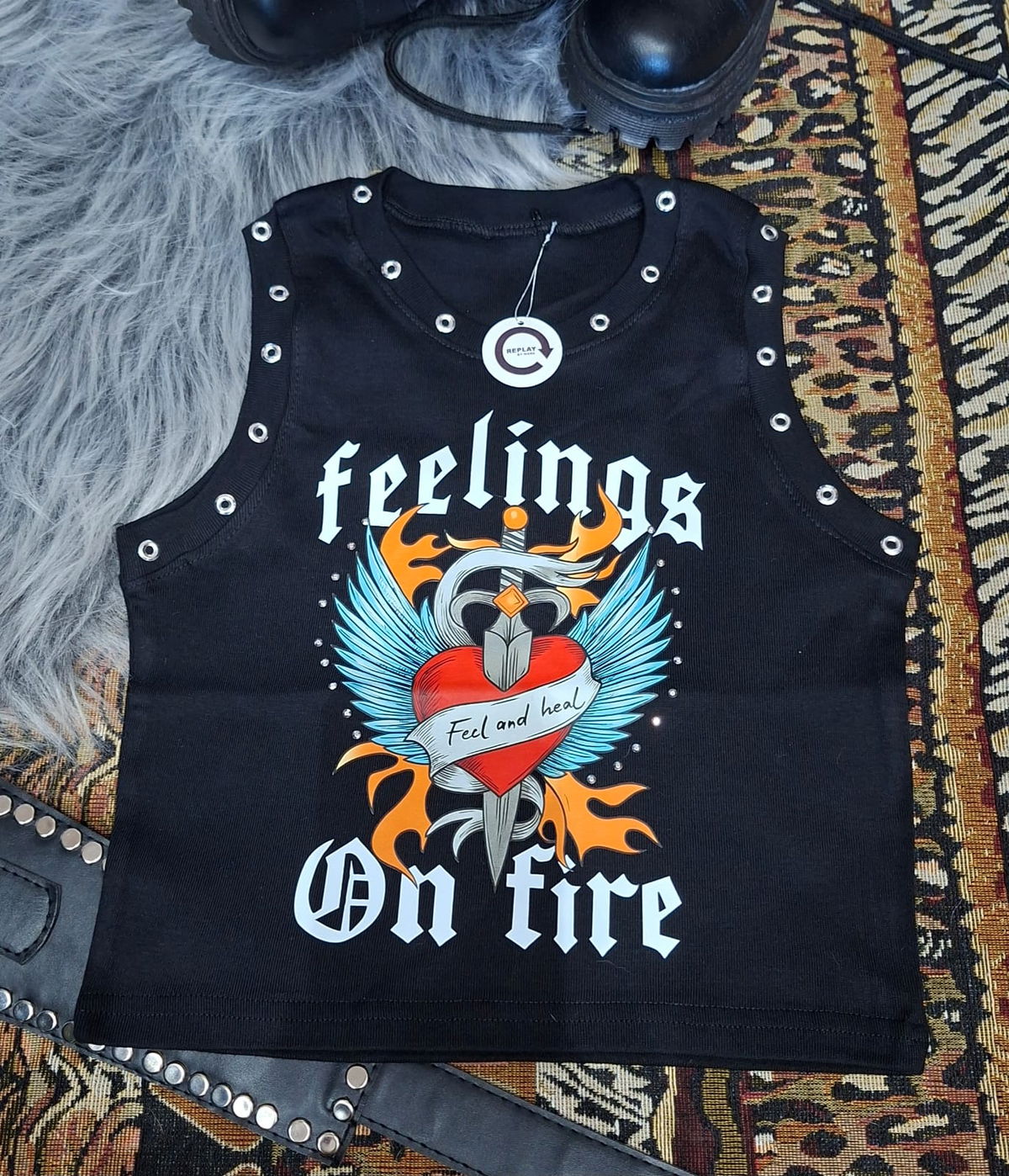 Top corte americano, detalle de tachitas. Talle único. Medidas: 45 cm de largo, 38 cm de ancho, 19 cm de sisa.