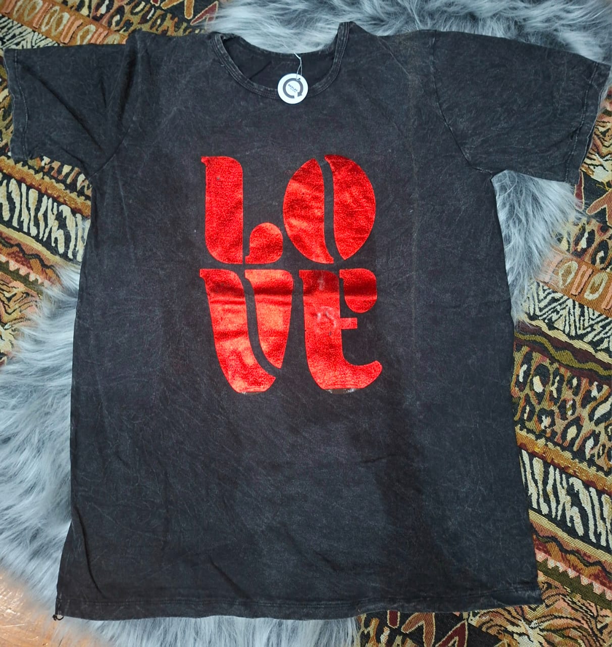 Remerón nevado de algodón, estampado. Medidas: 75 cm de largo, 54 cm de ancho, 22 cm de sisa.