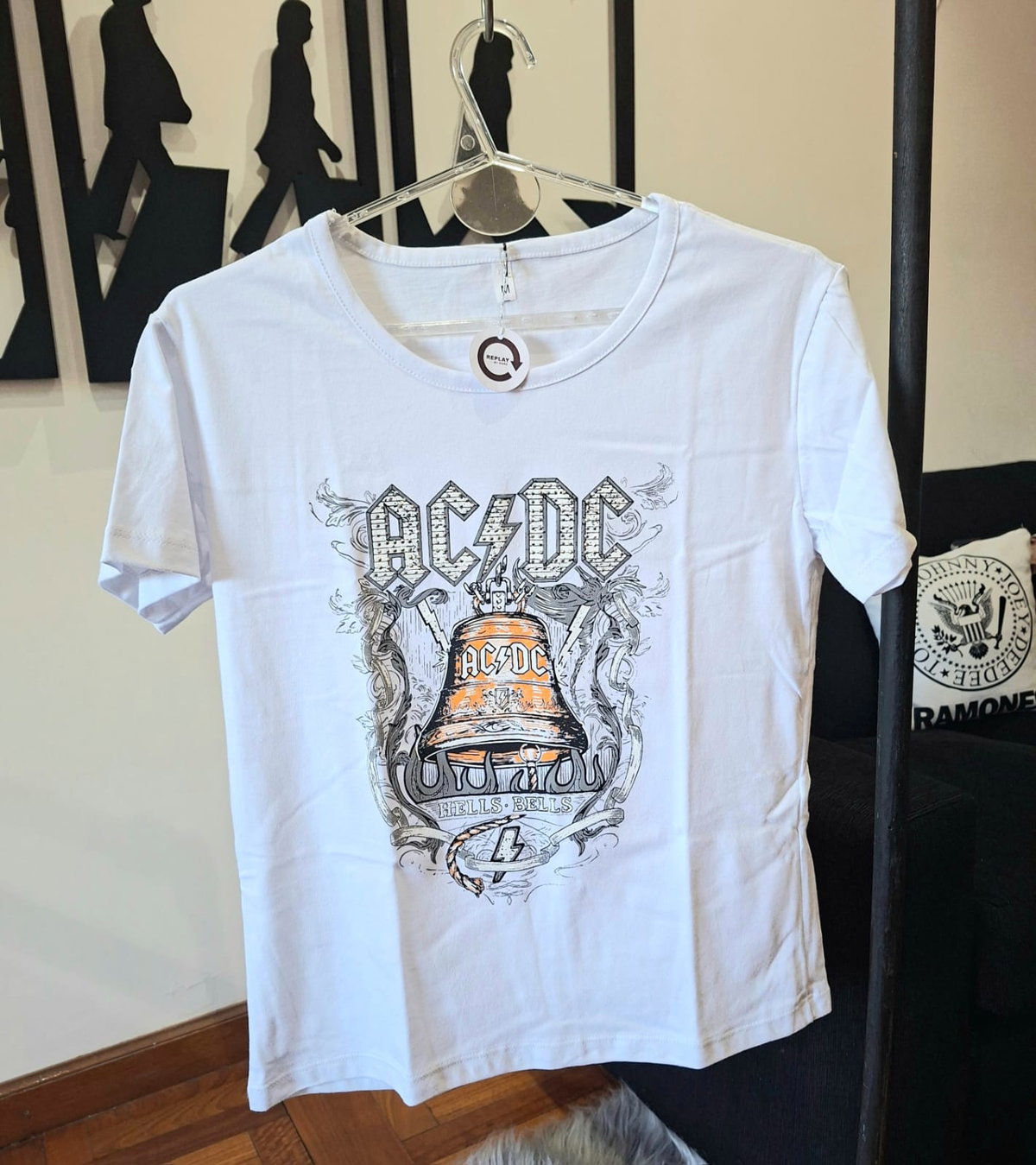 Remera clásica estampada, de algodón. Talle unico. Medidas, 59 cm de largo, 46 cm de ancho, 19 cm de sisa.